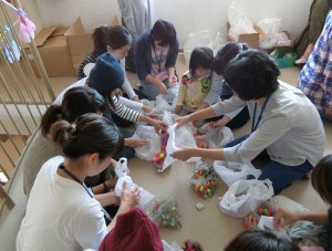 一旦えほんしつに入りエプロン・マスク・三角巾を
