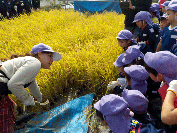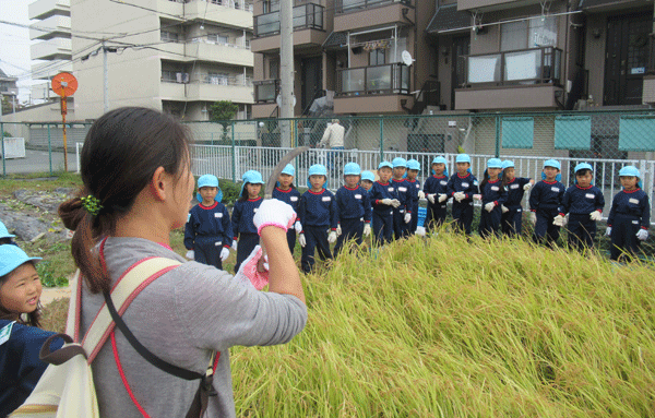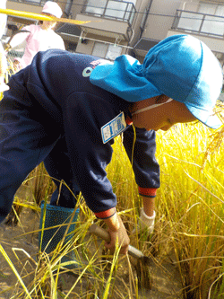 どうやって稲を刈るのか子ども達に伝えていきます。