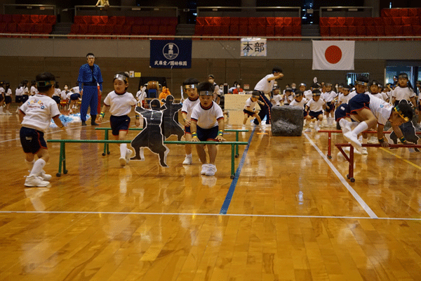 修練場に向かう年中見習い忍者の邪魔に来たのです