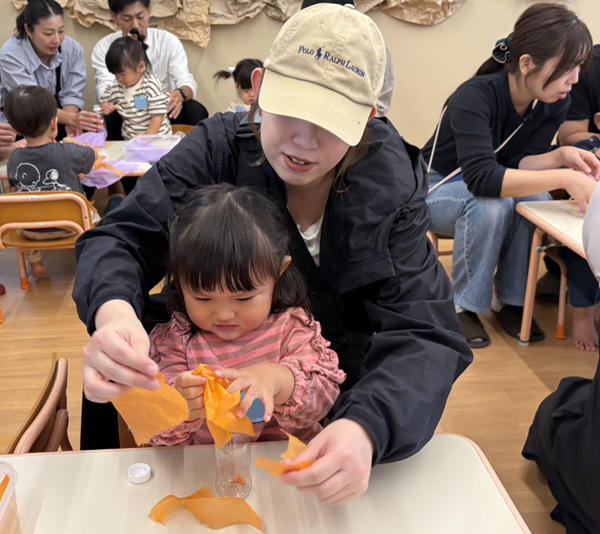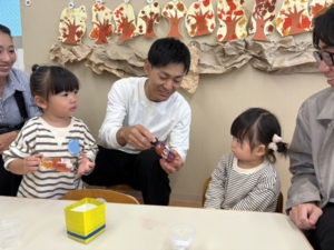 当日は、実際にプレ幼稚園で行っている朝の会や製作遊びを体験していただきました💭