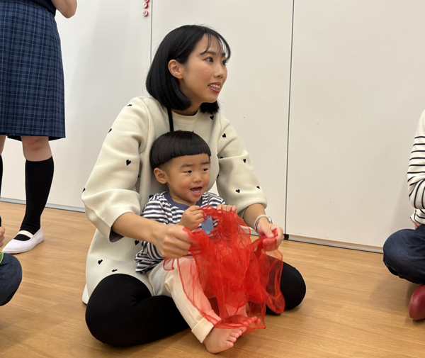 ふわっと動く布に興味が湧いた子どもたち🥰
