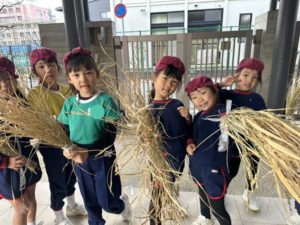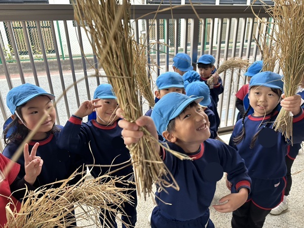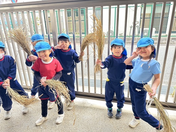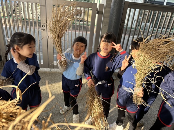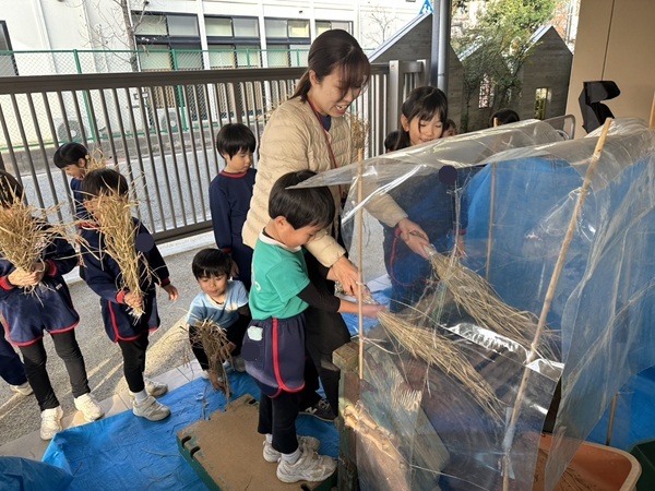刈り取った藁を使って