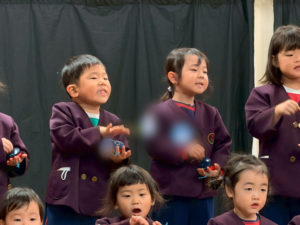 先日、年少組では初めての生活発表会がありました!