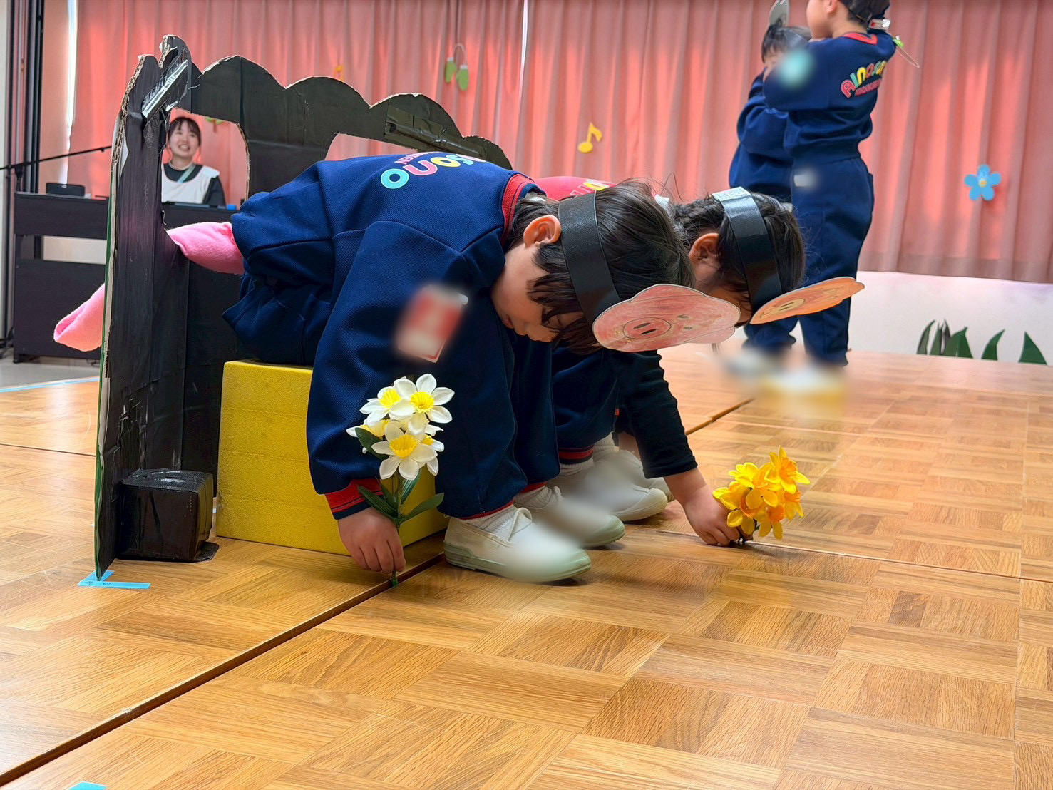 次はさくらんぼぐみの『ブーブーブー どこいった』の劇遊びです!