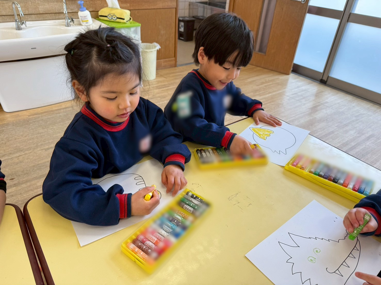 劇遊びで使うお面の顔も自分たちで