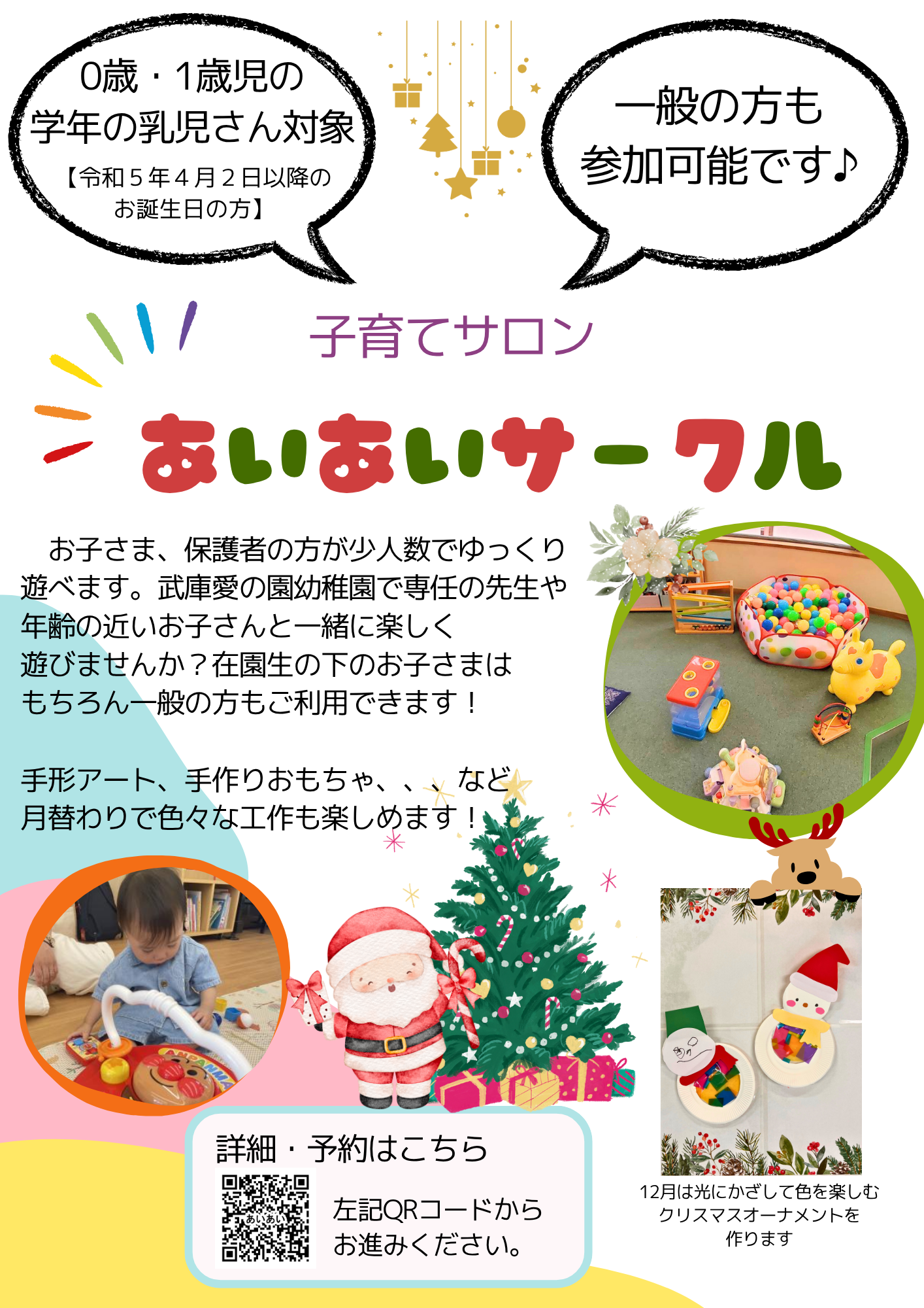 子育てサロン「あいあい」の12月の予約がスタートしました