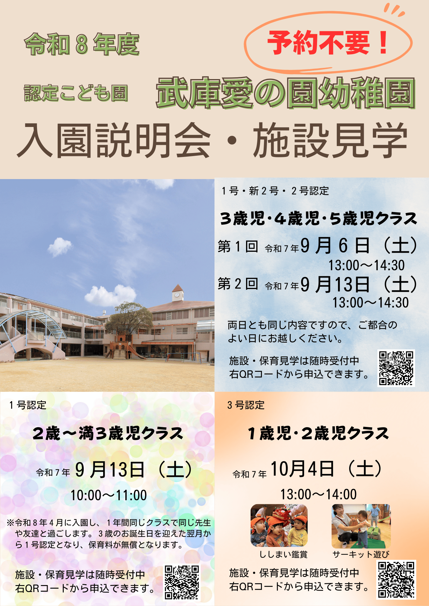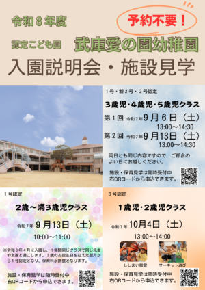 令和8年度入園希望者を対象とした説明会を行います。事前予約不要です。